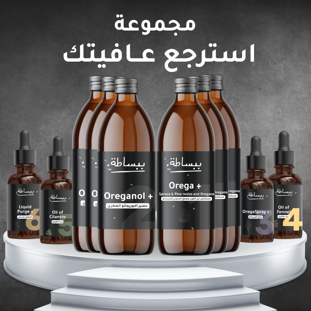 مجموعة من الزيوت و الاعشاب الطبيعية ١٠٠٪ معروفة بمعجزاتها الشفائية صُممت بطريقة مدروسة بحيث تؤخذ بتركيبات و كميات معينة في تسلسل معين لتخليص الجسم من السموم و دعم المناعة و استرجاع العافية.